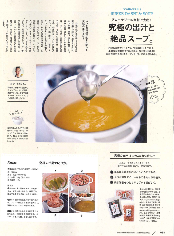 Hanako 2015/12/24 P58~究極の出汁と絶品スープ~にて、