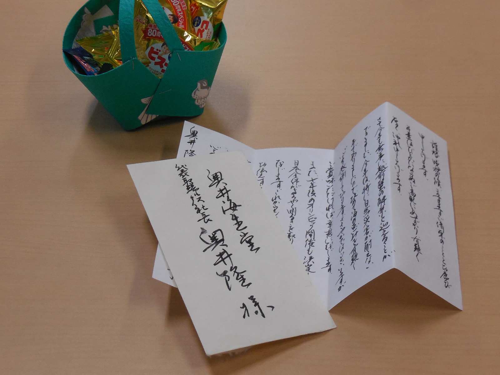 達筆のご丁寧なお手紙です。巻き物かと思いましたぁ~。墨文字が美しいです。