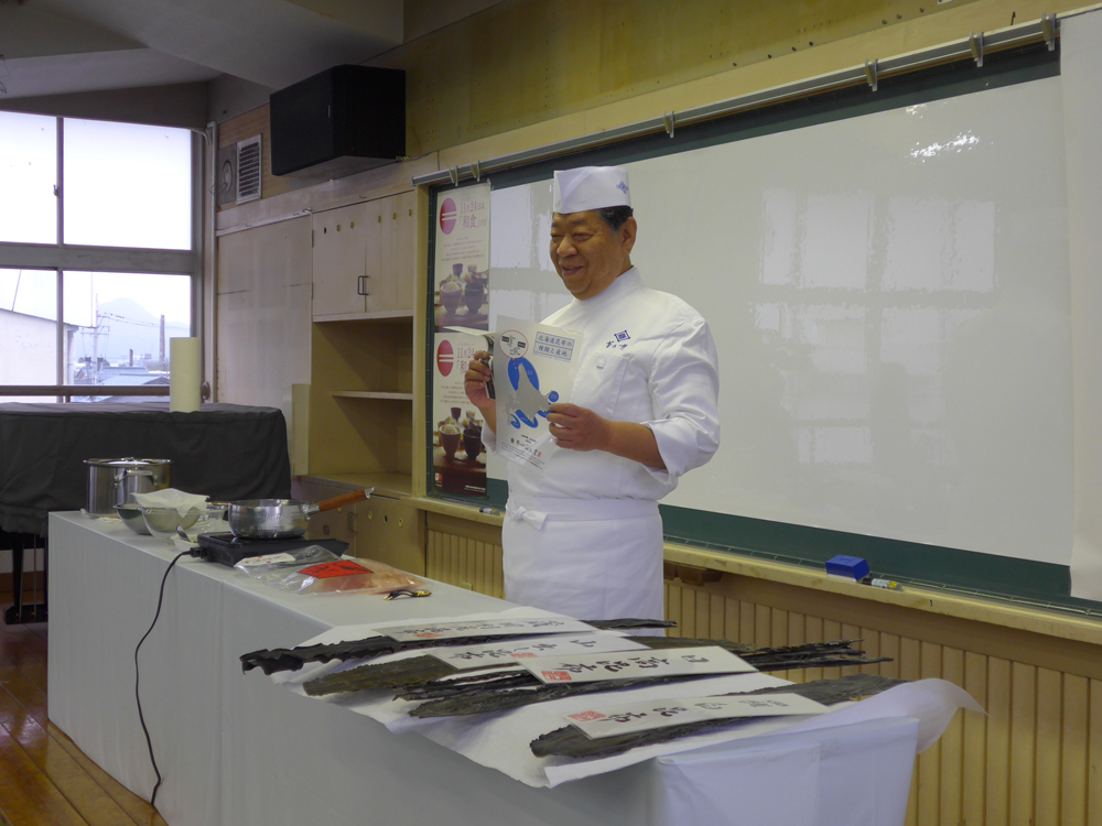 四限目の授業では、村田社長の「料亭の美味しいだし」という特別授業をしていただき、児童の皆さん美味しいだしに舌鼓を打っていました。昆布と鰹節でひく、うま味だしのひき方を学んだ皆さんの心に深く、食への関心が芽生えてきたようです。又、同時に和食文化への興味もわいてきたようでした。