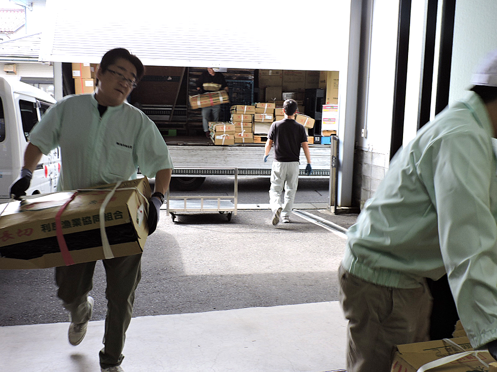 男子社員の荷受け作業は、本当に、大変(-_-) ご苦労様です。