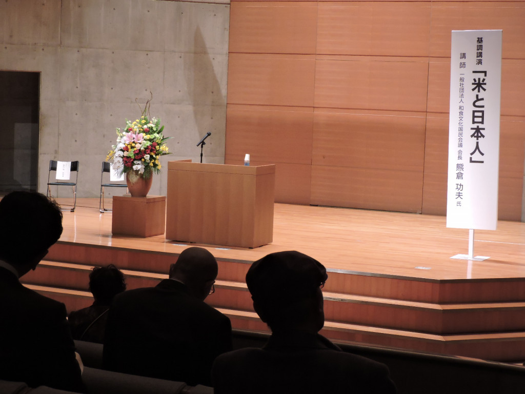 フォーラムの基調講演は一般社団法人和食文化国民会議会長の熊倉功夫様から「米と日本人」です。実は今年がコシヒカリ生誕60周年ということで福井県では色々なイベントが行なわれますが、このフォーラムにもサブタイトルとして「コシヒカリ生誕60周年」が題されました。福井県の農事試験場(今の農業試験場)で農林100号として登録されて60年、還暦を迎えます。60年たった今も作付面積日本一、子品種、孫品種の親品種としても活躍を続けています。