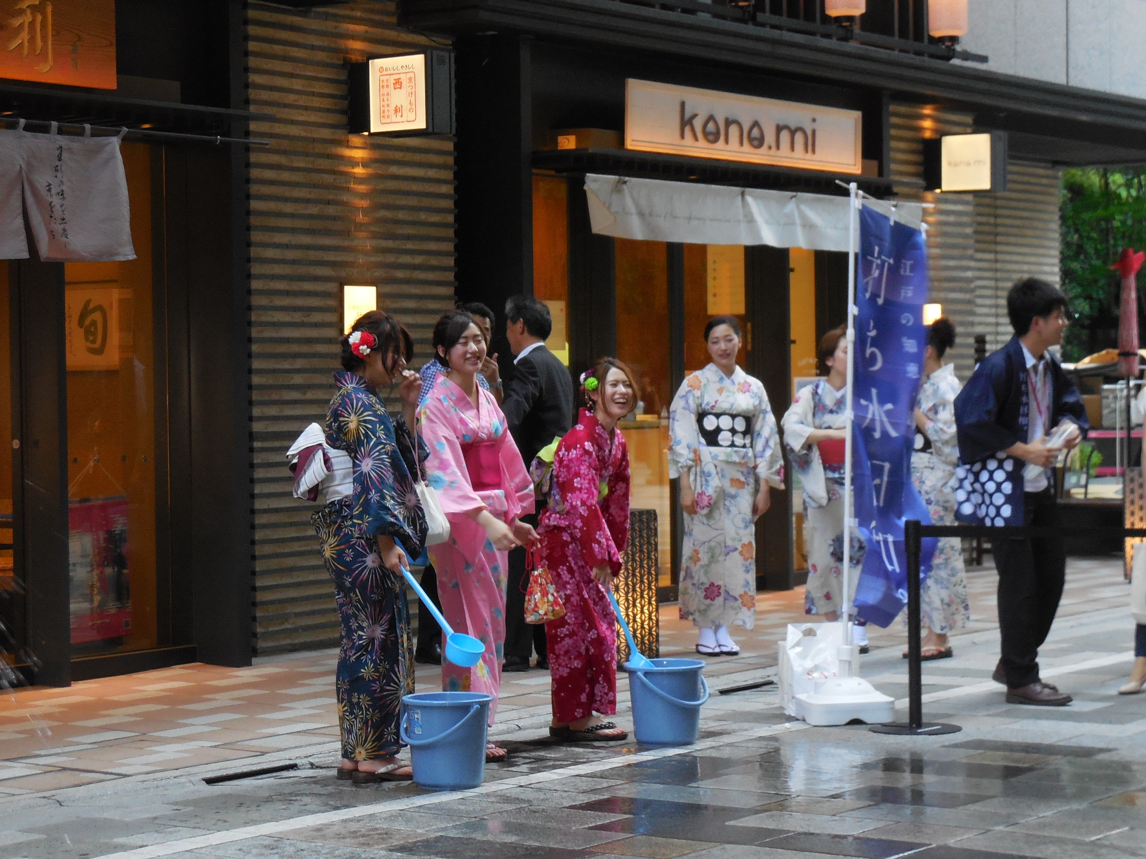 浴衣で打ち水。。。日本らしい素敵なイベントです!!