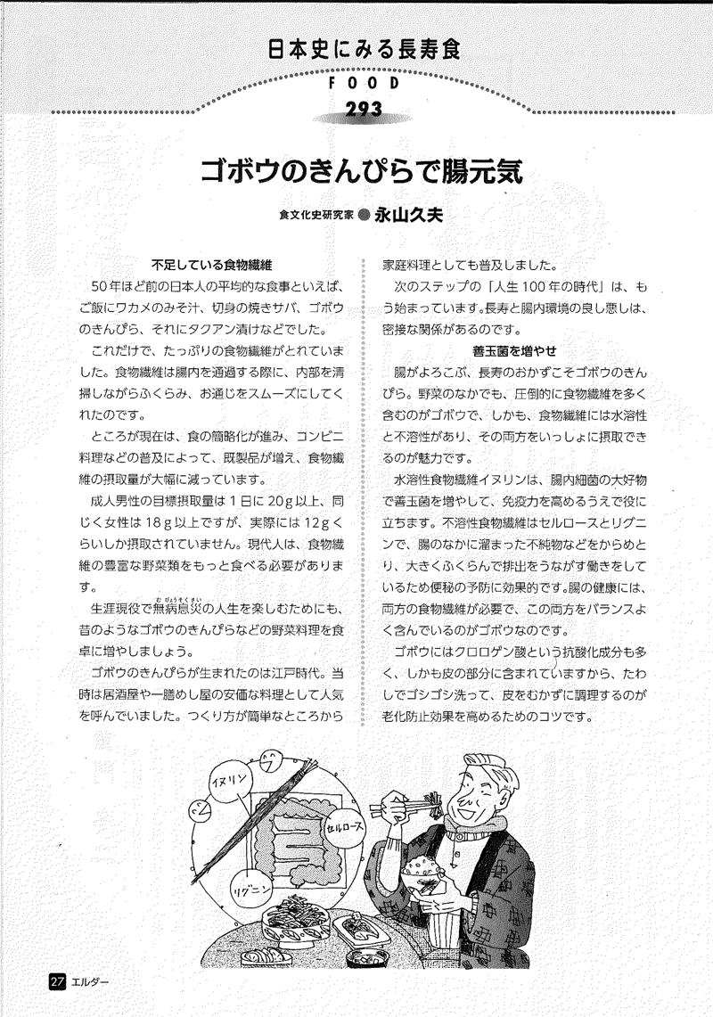 ●不溶性食物繊維はセルロースとリグニンで、腸のなかに溜まった不純物などをからめとり、大きく膨らんで排出をうながす働きをしているため便秘の予防に効果的